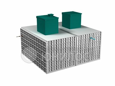Двухкорпусная установка Оптимально подходит для комфортного проживания до 150-ти человек со стандартным потребительским набором сантехнического оборудования 17 унитазов, 22 раковины, 12 душевых кабин и 5 ванных. Перерабатывает поступающие сточные воды без запаха и шума. На выходе выдаёт 99% очищенную воду, готовую к повторному использованию и не требующую дополнительной доочистки в полях фильтрации. Предназначена для домов с низким уровнем заложения трубы 85-140 см от уровня грунта. Срок полезного использования 50 и более лет. Устанавливается в любых типах грунта.По необходимости может комплектоваться принудительным выбросом очищенной воды (насос+емкость)